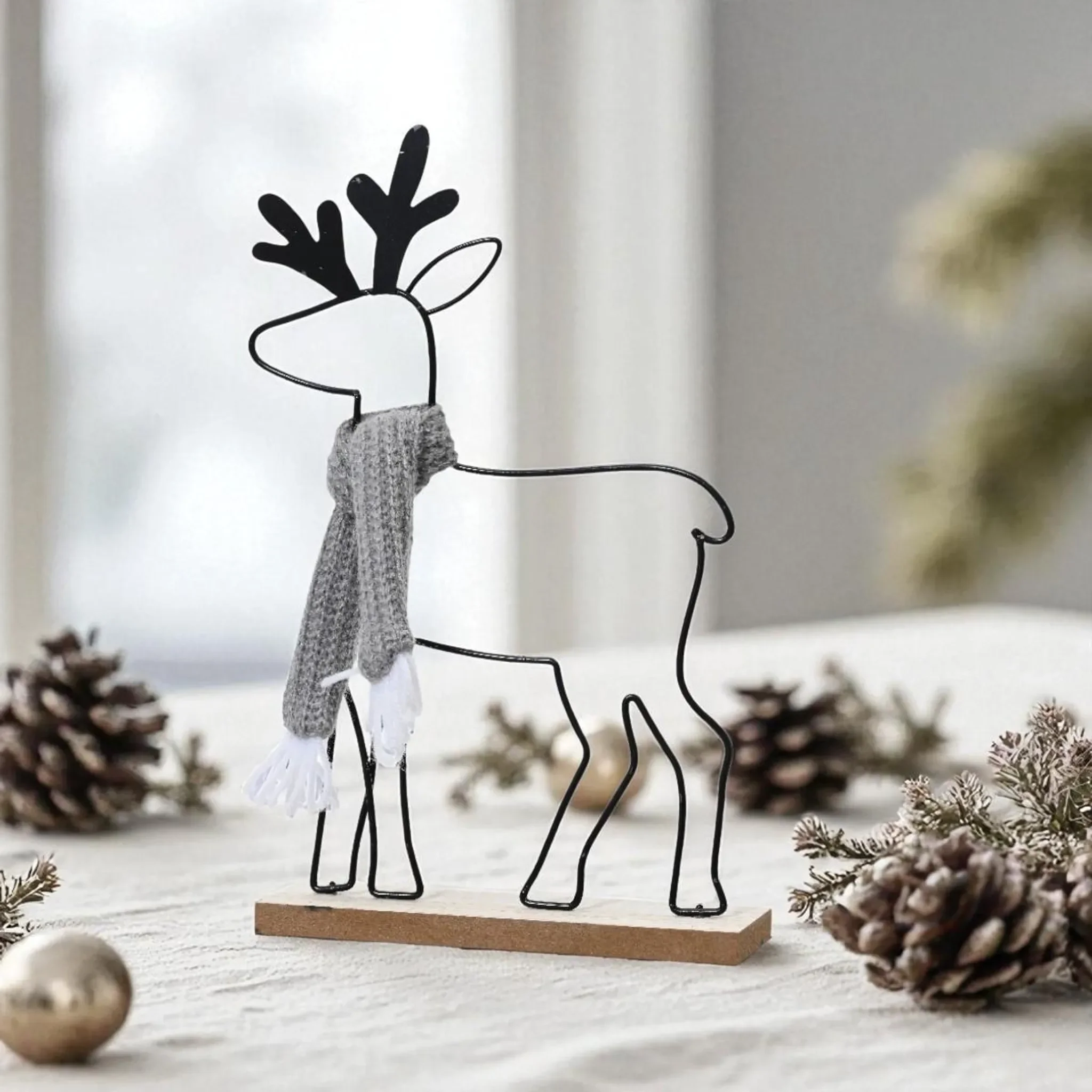 Highlights: Modernes Hirschdesign, stabile Metallkonstruktion, dekorativer Schal für winterlichen Charme, vielseitig platzierbar, ideal als Weihnachtsdeko oder Geschenk.