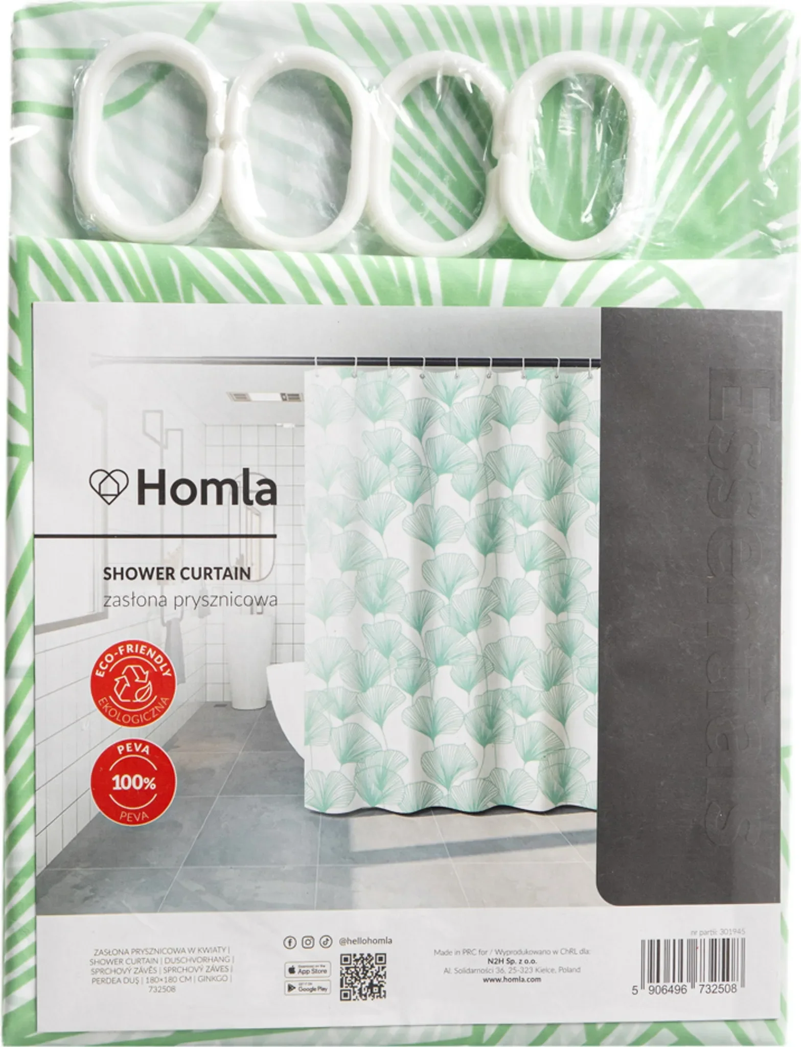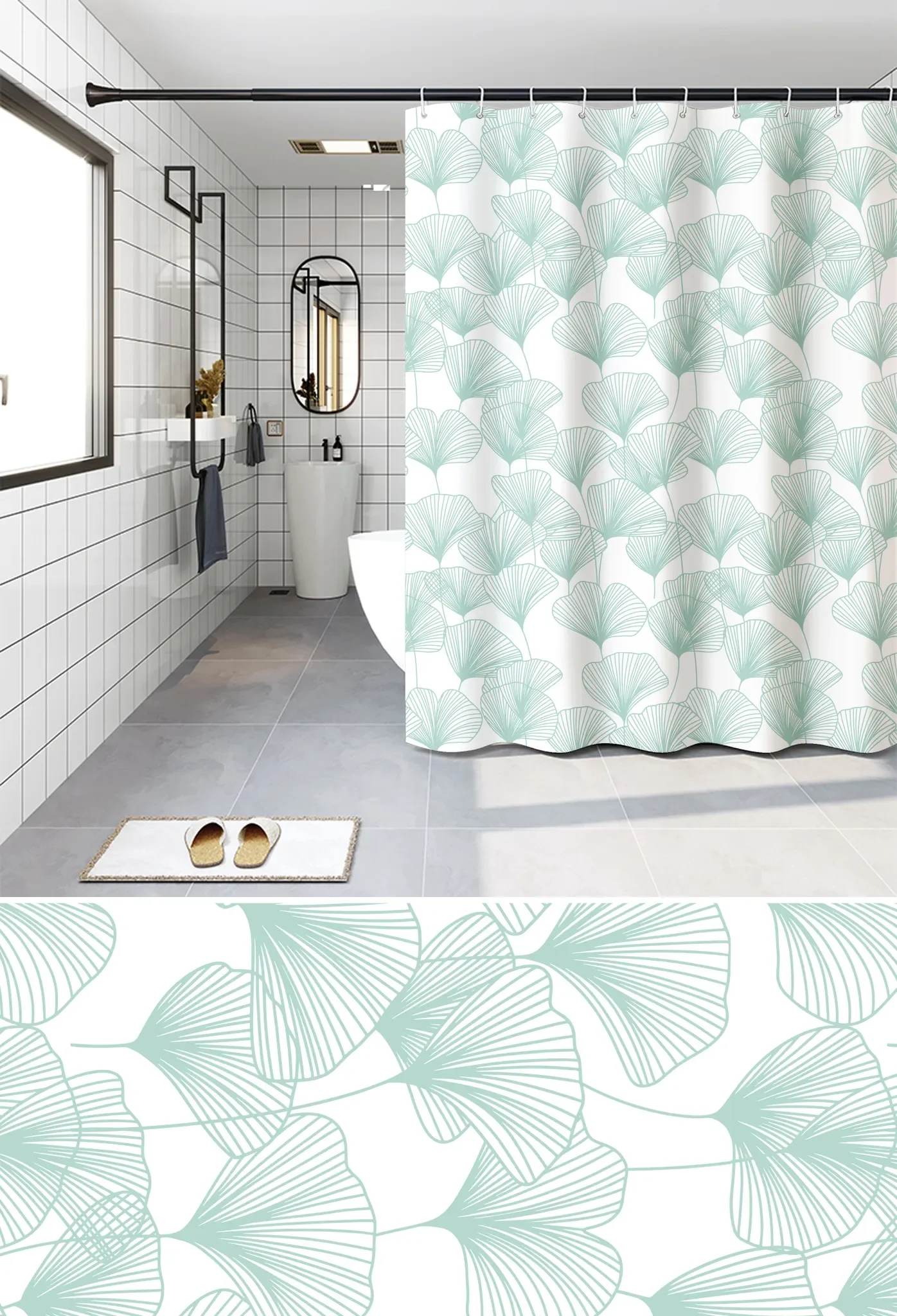 Der florale Duschvorhang „GINKGO“ verleiht dem Badezimmer eine ruhige, natürliche Ausstrahlung. Das moderne Muster in gedeckten Grüntönen sorgt für ein harmonisches Gesamtbild und lässt sich vielseitig mit hellen wie dunklen Badaccessoires kombinieren.