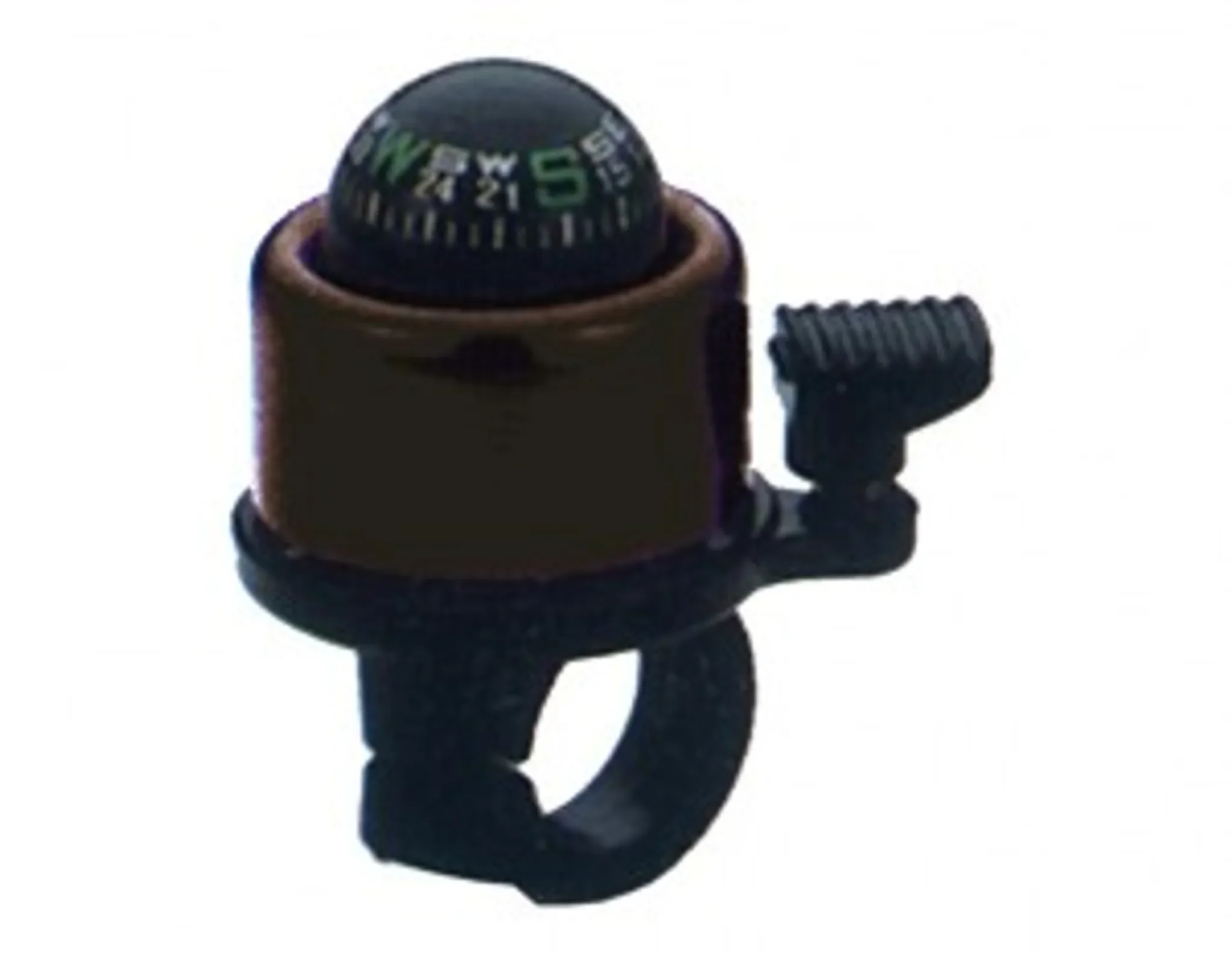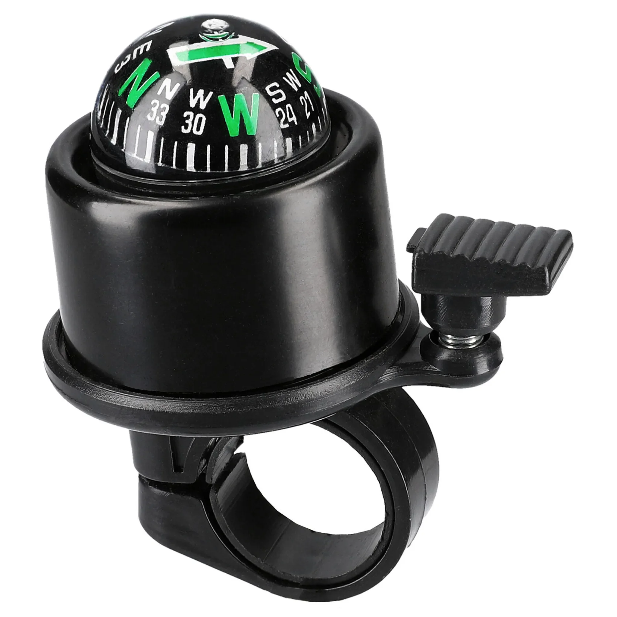 Produktinformationen "Fahrradklingel mit Kompass – Aluminium, schwarz, 360° drehbarer Federklöppel"
