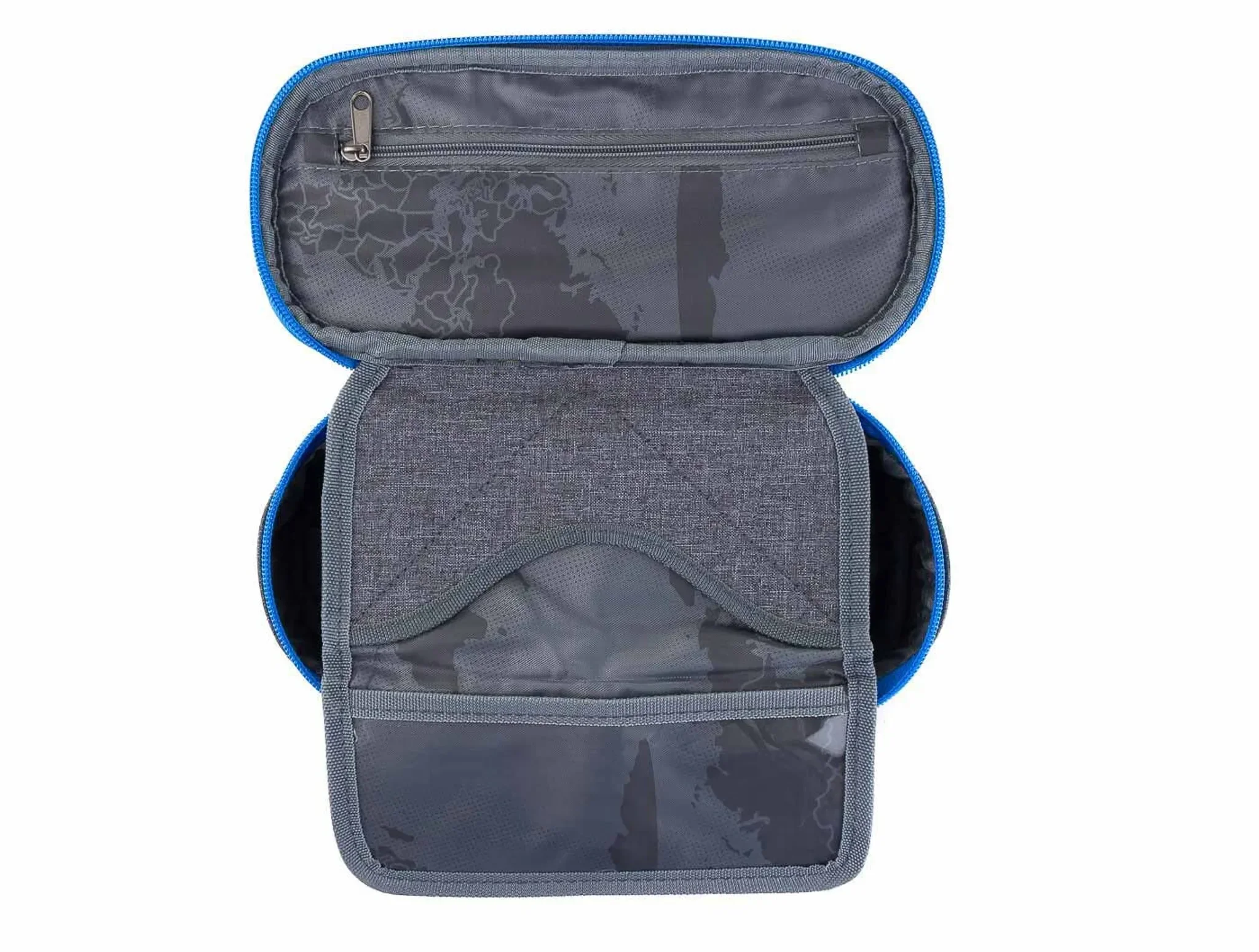 Mit diesem trendigen Franky Schlampermäppchen 621-2 wird Ihr Kind zum Hingucker in der Klasse. Das moderne Design in Grau/Blau überzeugt nicht nur optisch, sondern bietet auch im Inneren eine durchdachte Organisation für alle wichtigen Schreibutensilien.