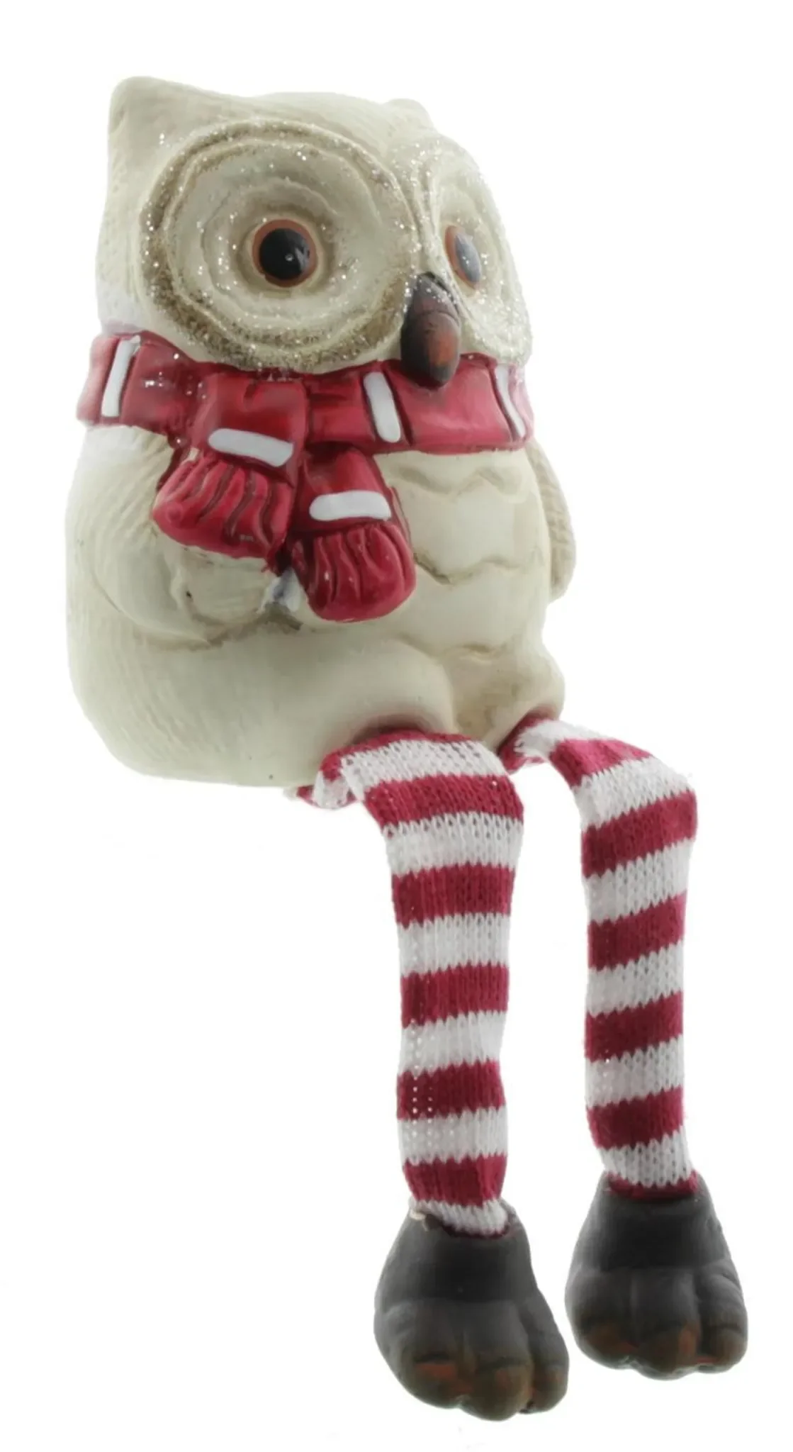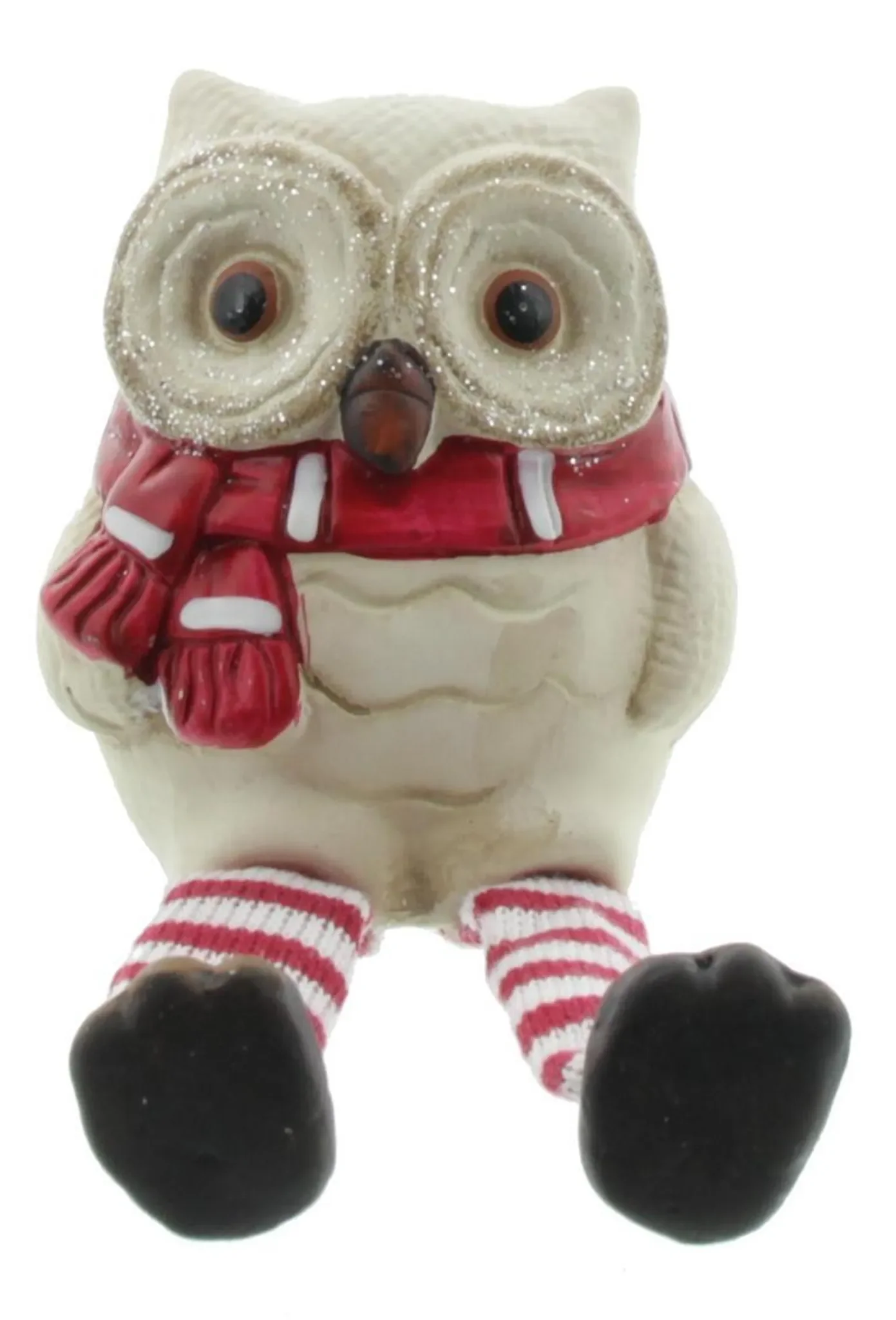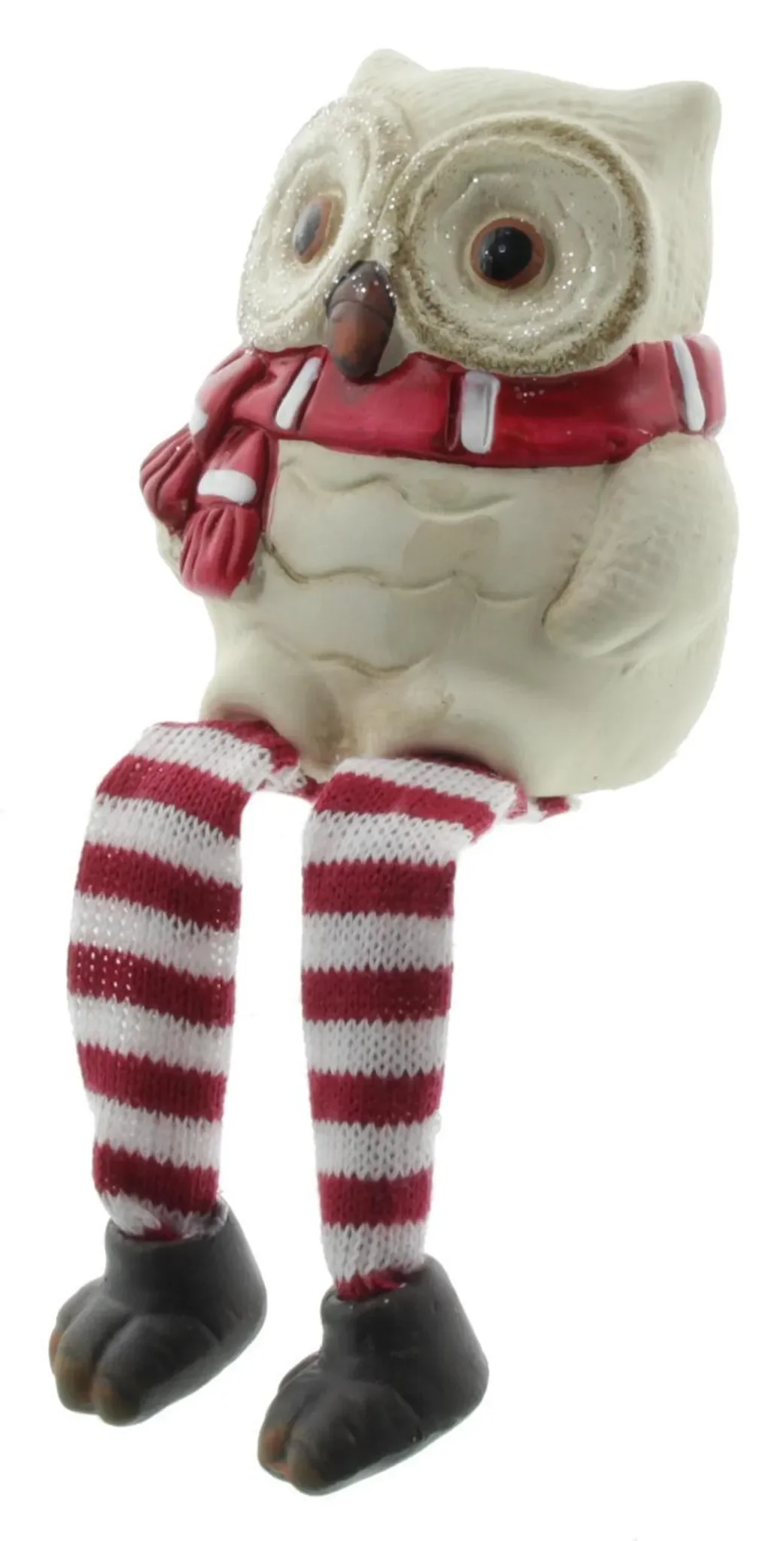 Kantenhocker Eule – Weihnachtsdeko in Weiß/Rot