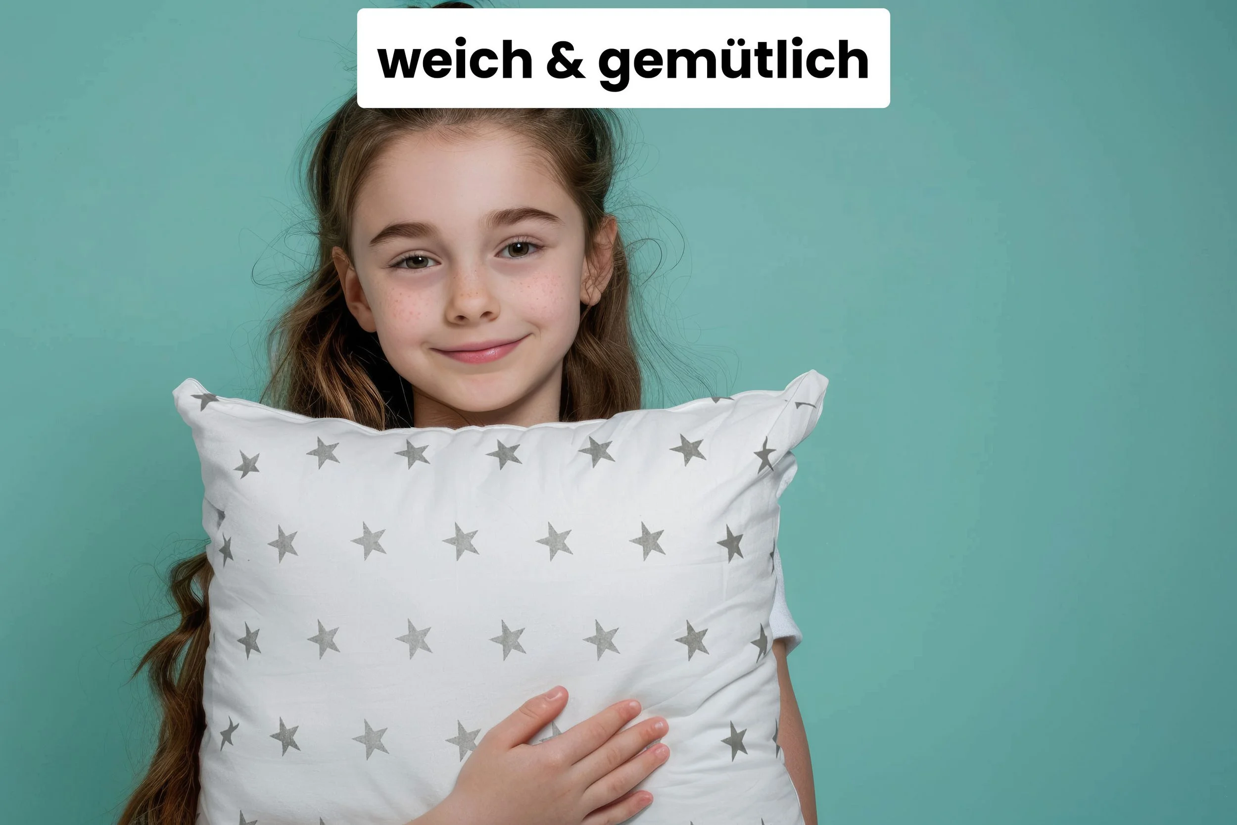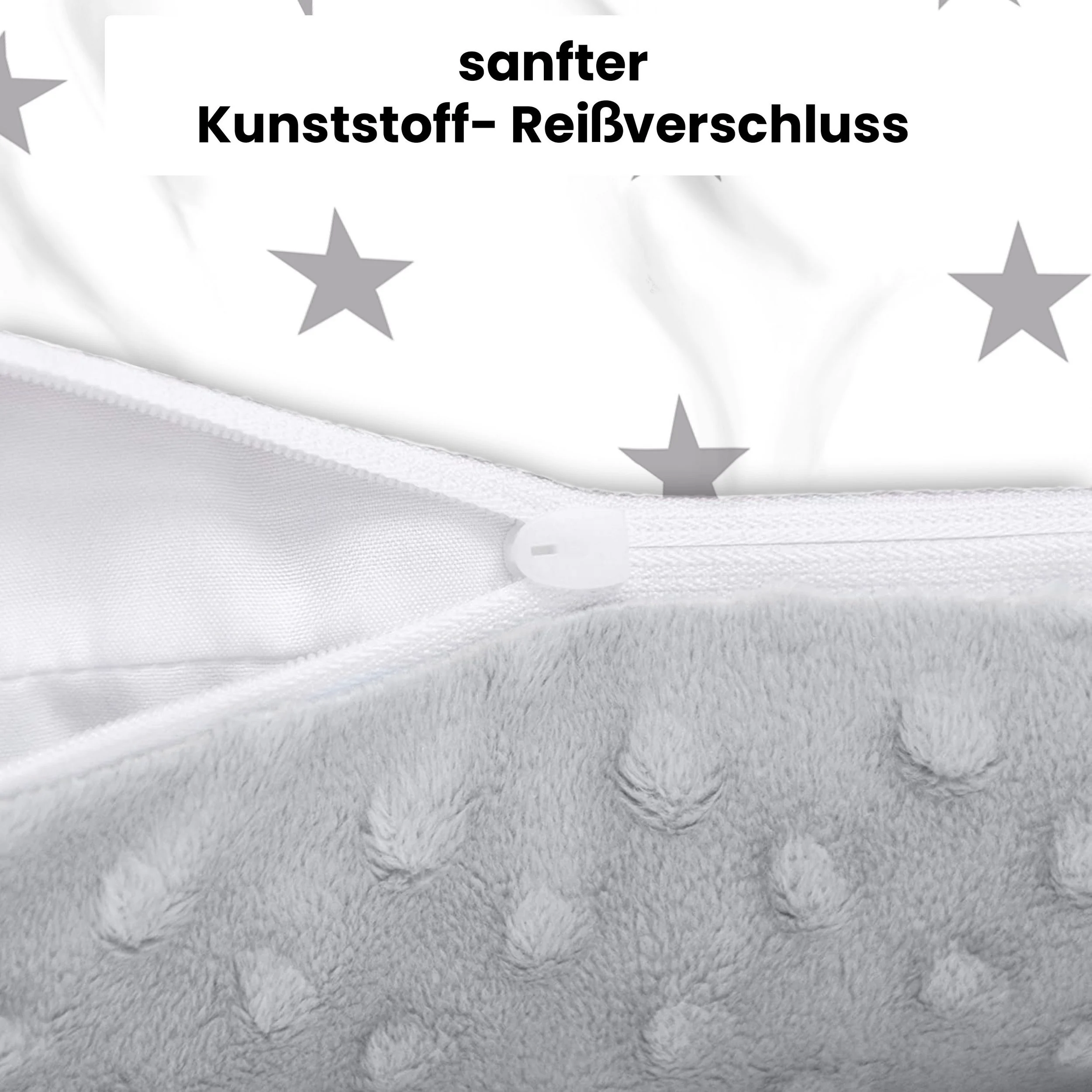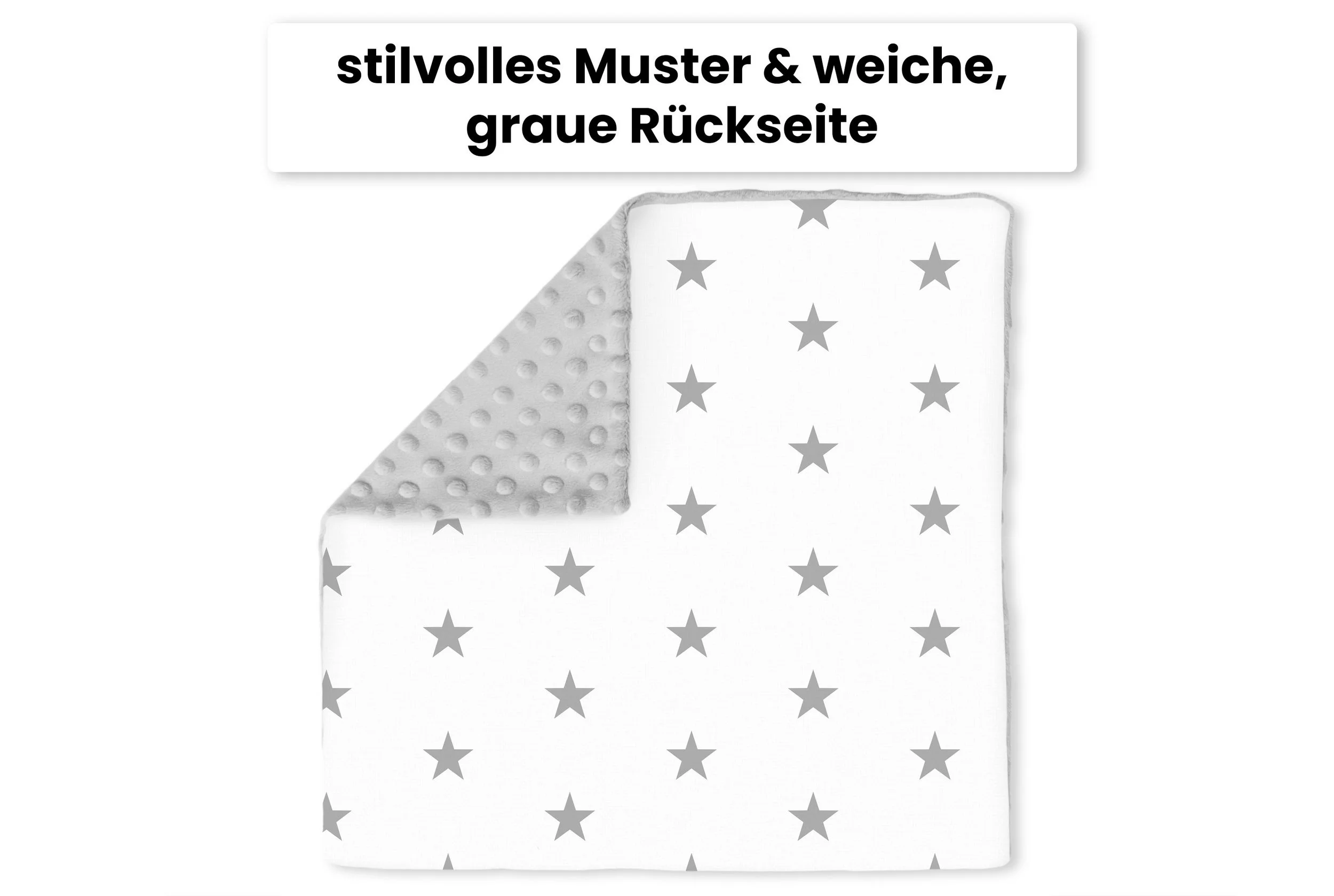 Highlights: Beidseitig nutzbar, zeitloses Sternchen-Design, hautfreundlicher Reißverschluss, form- und farbstabil auch nach häufigem Waschen.