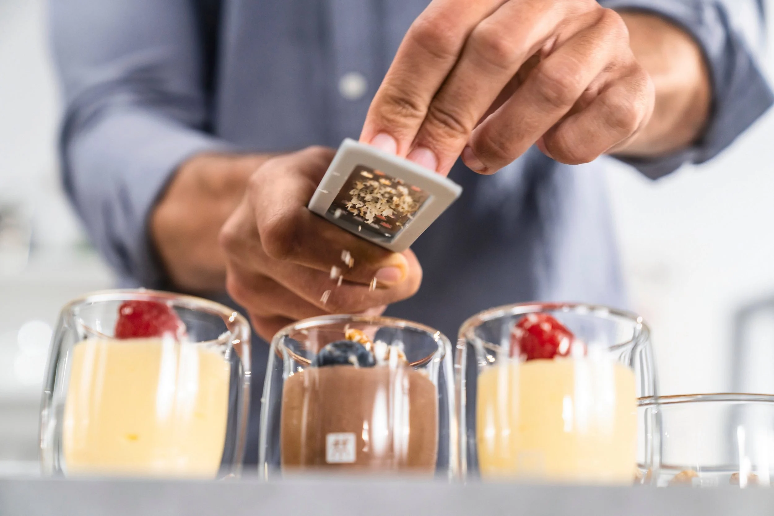 Diese kompakte Küchenreibe vereint präzise Schneidtechnik mit hoher Effizienz. Dank der innovativen Zwei-Wege-Reibtechnologie lassen sich kleine Zutaten schnell und mühelos in beide Richtungen reiben – ideal zum Würzen, Garnieren und Verfeinern von Speisen.