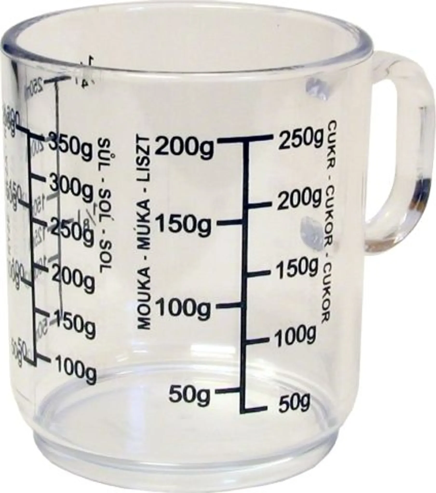 Dank des leichten, robusten Kunststoffs liegt der Messbecher angenehm in der Hand. Er ist vielseitig einsetzbar – ob für Wasser, Mehl, Zucker oder Salz – und damit ein praktischer Helfer beim Kochen und Backen.