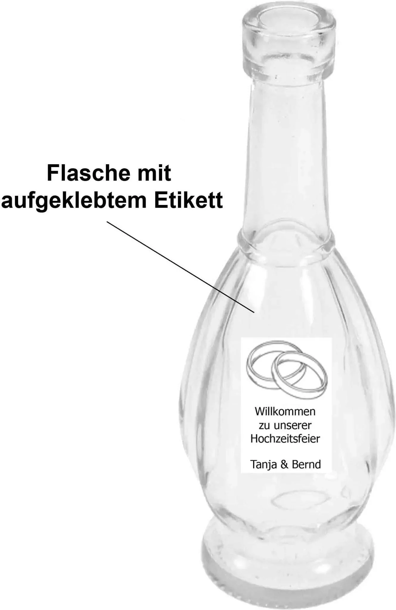 Highlights: Elegante Glasform, gerillter Bauch mit glatter Etikettenfläche, standfester Sockel, ideal für personalisierte Tischdekorationen, vielseitig einsetzbar für Feiern und Events.
